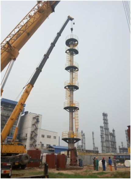 耐可集團(tuán)深圳源禹環(huán)保科技有限公司(以下簡(jiǎn)稱源禹環(huán)保)承建的山東玉皇高濃度氨氮廢水處理項(xiàng)目(水量:27m3/h,進(jìn)水NH3-N:10000-20000mg/L,pH:8-9;出水NH3-N:≦50mg/L)。在雙方領(lǐng)導(dǎo)的高度重視下,在源禹環(huán)保公司員工的積極努力下,于2015年9月10日成功完成的該項(xiàng)目的負(fù)壓脫氨塔的安裝工作。