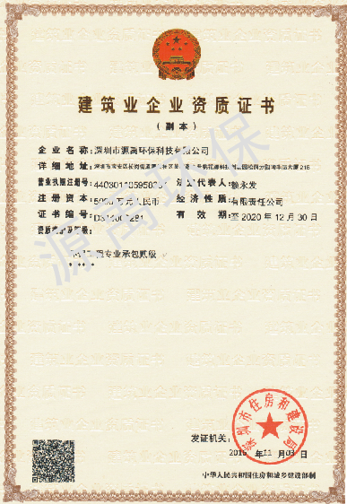 熱烈祝賀深圳市源禹環(huán)??萍加邢薰臼┕べY質(zhì)晉升二級!這是廣東省建設廳對我司績效的高度認可,為我司對環(huán)保事業(yè)做出更大貢獻提供了平臺。未來將有效拓展我司的市場發(fā)展空間,歡迎新老顧客來電來函洽談合作,并且愿意與環(huán)保行業(yè)相關單位攜手并進,共創(chuàng)輝煌。