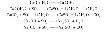 濕法采用堿法吸收較多,堿性吸收劑有石灰石、石灰、碳酸鈉和氫氧化鈉,常見處理設(shè)備有旋流塔板脫硫除塵噴淋塔,其主要吸收反應(yīng)式如下四: