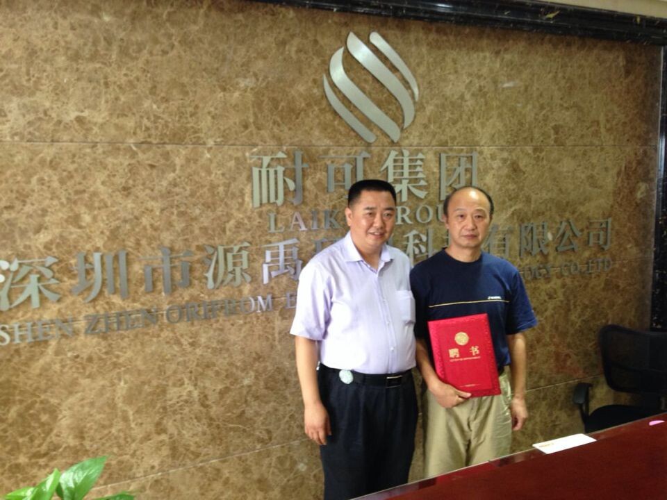 源禹環(huán)保公司董事長賴永發(fā)先生向萬林生教授頒發(fā)聘書