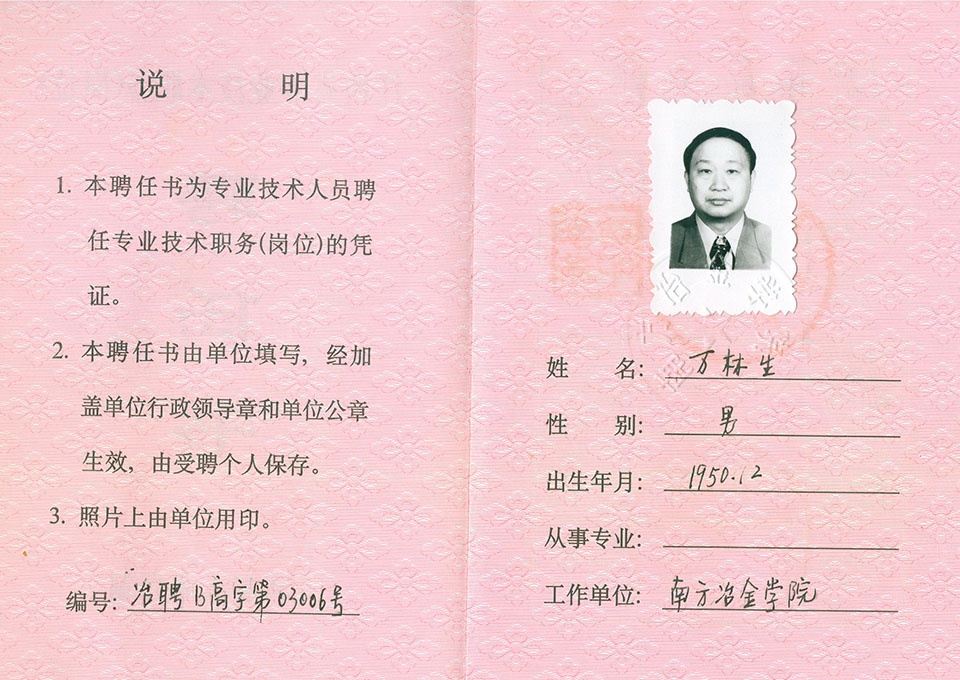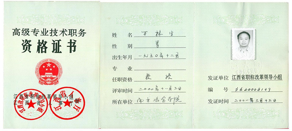 萬林生獲獎(jiǎng)證書